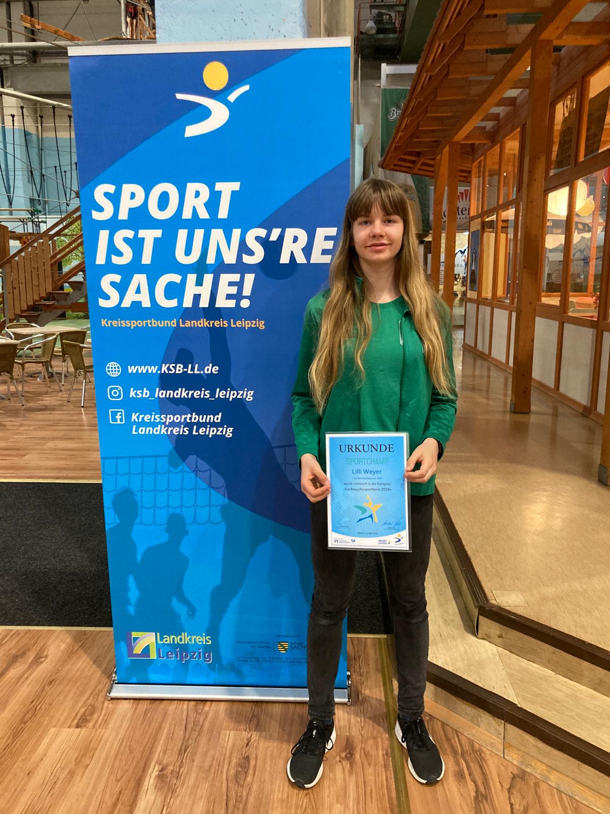 Auch hier war die TSG sehr gut durch Leichtathletin Lilli Weyer vertreten. Sie wurde ebenso auf der Bühne für ihre Erfolge auf sächsischer Ebene im Laufbereich 800/ 3000m/ Stadtrangliste ausgezeichnet.